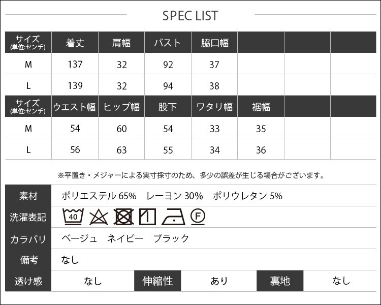 素材:ポリエステル65% レーヨン30% ポリウレタン5%
