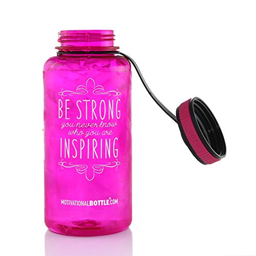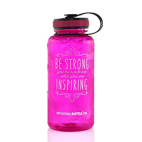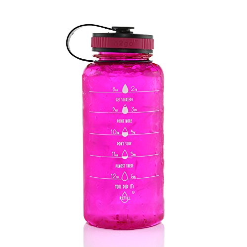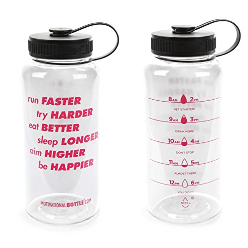 Motivational Bottle 34oz Fitness Workout Sports Water Bottle with Unique Timeline | Measurements | Goal Marked Times For Measuring Your Daily Water Intake, BPA Free Non-toxic Tritan (pink)