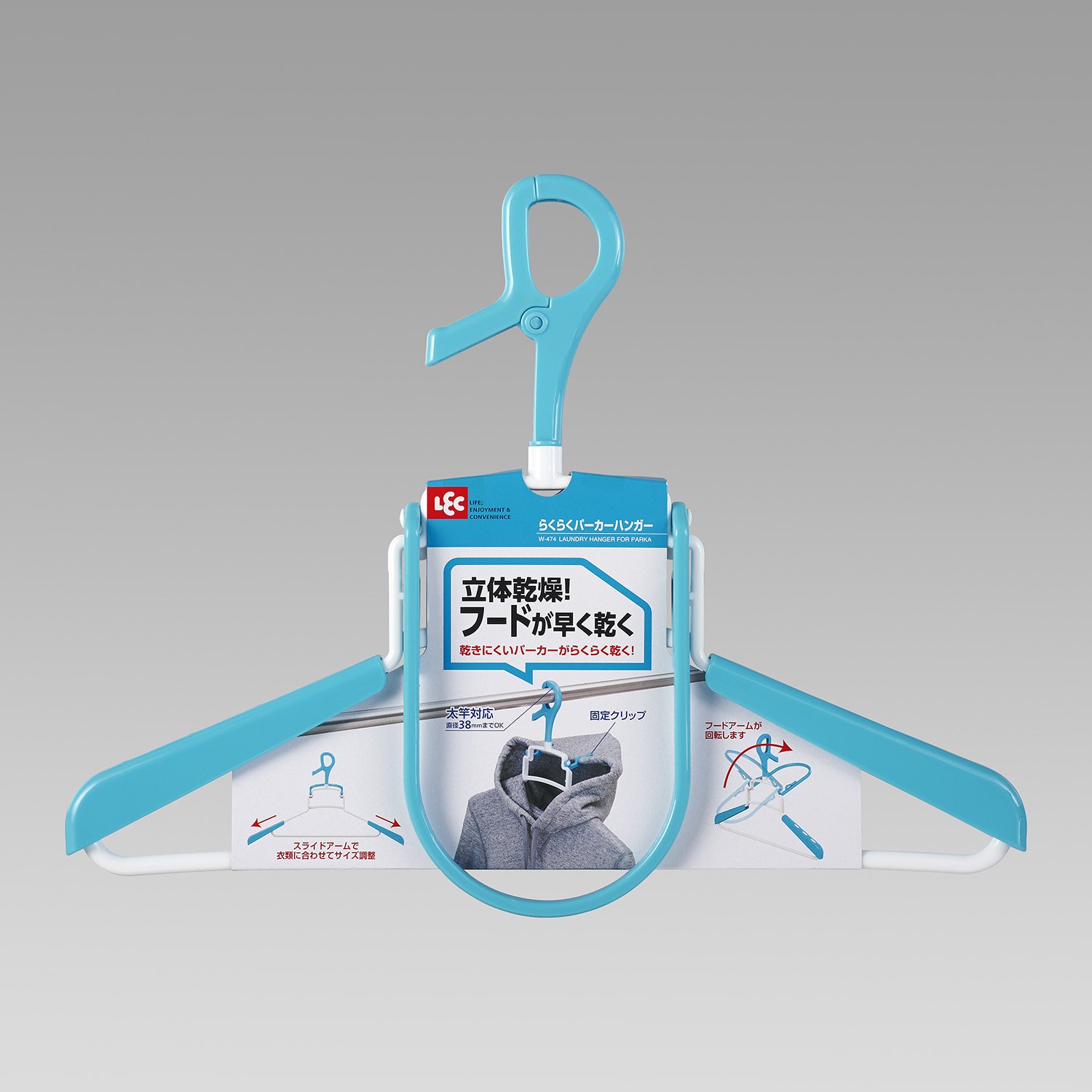 ● It is a special hanger that Parker dries quickly as it can lift and hood the hood.