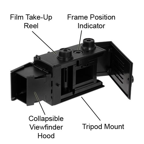 Uses 35mm film (NOT included) preferably iso 200 or 400