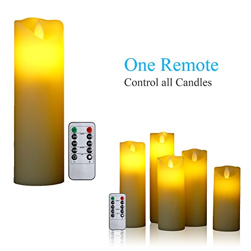 Flameless Battery Operated Led Candles With Remote Timer Set 5" 6" 7" 8" 9" Flickering Dancing Flame White Led Pillar Candles by Letetop (Ivory)