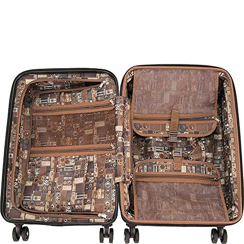 Product Description Expands An Additional 1.5" Inches For GreaterCarrying CapacityMulti-Directional 8-Wheel Spinners Allow Smooth, 360°Degree Movement Over Any Rough Surface ForComplete Mobility Free-Weight Rolling, Relieving AnyPressure From Your Arms While On The MoveLightweight Construction Helps You Adhere To AirlineWeight Restrictions To Avoid Unneeded Airport FeesDurable, Eye-Catching ABS Printed PolycarbonateFilm Exterior With Fully Lined Tear-Resistant InteriorRear Section Interior Includes A Side Zipper Pocket For Smaller Items And A Buckled Garment Panel With Two Mesh Zipper PocketsSelf-Repairing Coil Zippers For Long-Lasting UseBehind The Lid Interior Features A Large U-Shaped Zipper Pocket With Two Additional Zipper PocketsFlexible, Padded Top Handle And Bottom Grab Handle Provides Easy LiftingSturdy Locking Retractable Push-Button Telescopic Trolley Handle Conductive For Simple, One-Handed UseMeets Most U.S. Based Airline Carry-On Size Requirements And Fits Into Most Airline Overhead Bin Compartments_x000D_ Overall Size: 22.0" H x 14.0" W x 10.0"-11.5"DWeight: 7.9 lbs 0