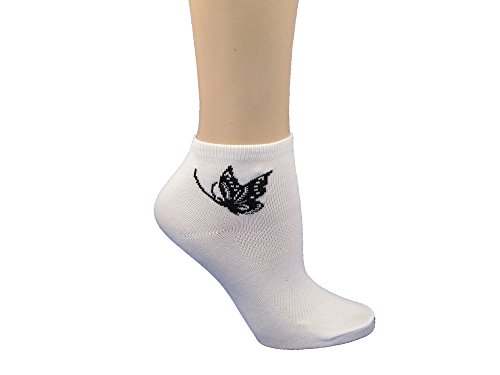 -. Title : Couver Girl white Cotton Ankle Low Cut Socks with Butterfly pattern 6 Pairs