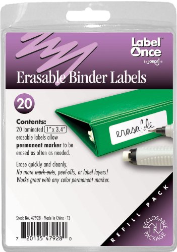 Jokari Label Once Erasable Binder Labels Refill Pack, 20-Count