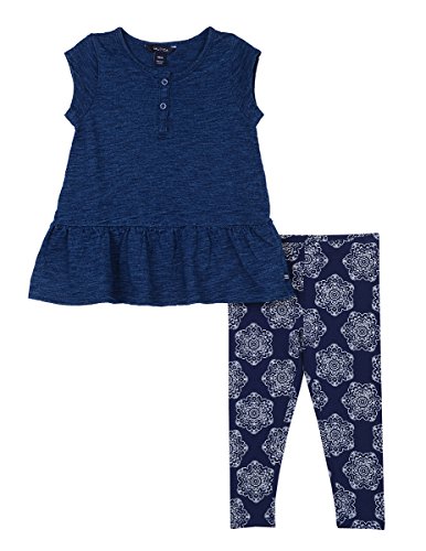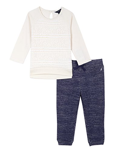This Nautica two piece set features a ponte color block top with back zipper paired with coordinating legging.