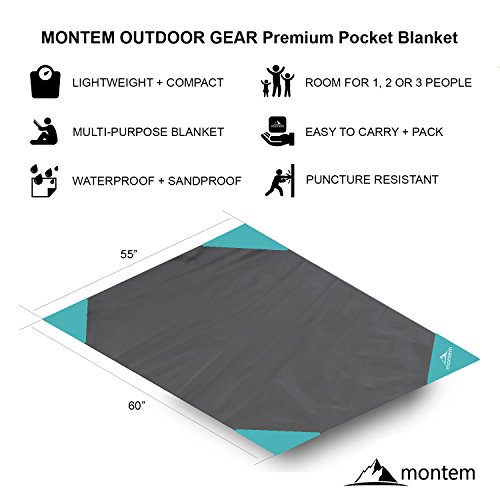 Montem Premium Pocket Blanket / Compact Picnic, Beach, Outdoor, Camping Blanket Made From Premium Soft and Lightweight Water Resistant Material Ideal for Camping / Traveling / Hiking