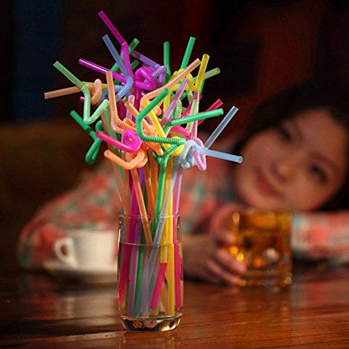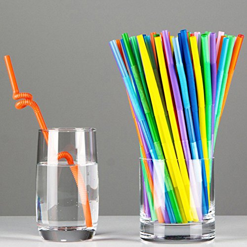 -. Title : Taloyer 100 pcs Colorful Straws Extra Long Flexible Bendy Party Disposabl Drinking Straws