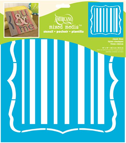 Americana Mixed Media Stencils are perfect for use with any acrylic paint or spray mister. The 12" x 12" size is ideal for mixed media art, scrapbooking uses and many other fine art and craft related projects. These stencils are available in 8 trendy designs. They can also be used for adding background images or creating dimension and layers to any project.Feature