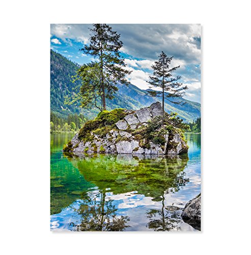 -. Feature : Cardboard jigsaw puzzle featuring trees on a Rocky island reflected in a mountainside lake / 500 uniquely shaped pieces / Wipe-clean surface / Promotes hand-eye coordination, fine motor skills, and problem solving skills / Ages 12+; 19.25 x 26.5 inches (48.9 x 67.31 cm) when assembled