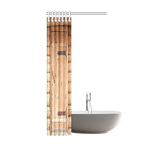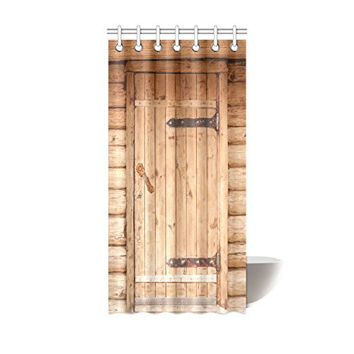 InterestPrint Rustic Style Barn Wood Door Shower Curtain Decor, Wooden Brown Door Bath Outdoor Texture Background Closeup Fabric Bathroom Shower Curtain 36 X 72 Inches Long
