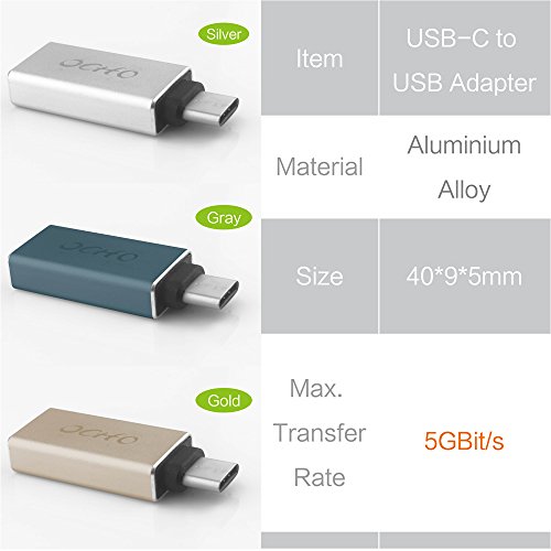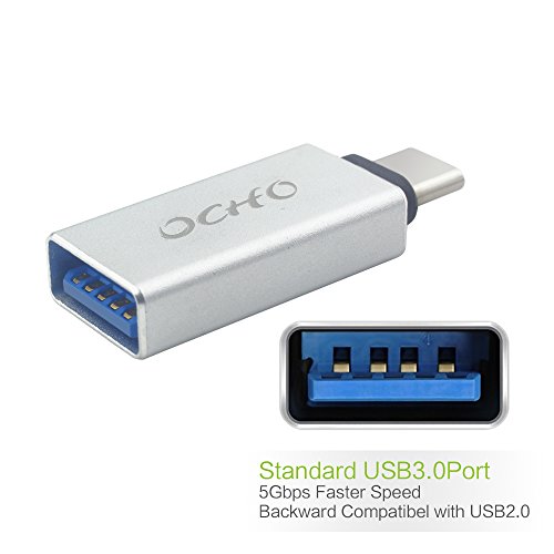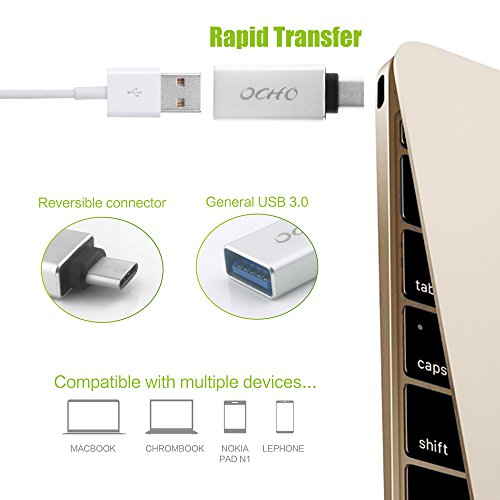 Type C Adapter, OCHO Reversible Hi-speed USB 3.1 Type C Male to Type A USB 3.0 Female Adapter Converter Connector for 12” New MacBook,Nexus 5X / 6P, Chromebook Pixel, HP Pavilion x2 - Silver