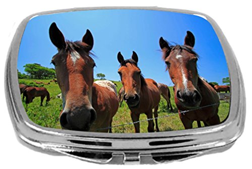 Rikki Knight Compact Mirror, Three Horses Close-up