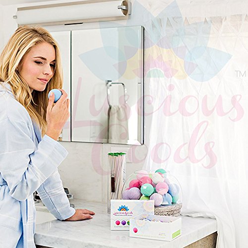 - HEALTHIER, HAPPIER SKIN Luscious Goods richly-scented bath bombs are like aromatherapy for the soul. Made from food grade baking soda and citric acids, sea salts and deeply moisturizing shea butter. Moisturize your skin with 100% all-natural ingredients that leave skin so soft there's no need for lotion afterward. Light a candle and enjoy the jacuzzi like foaming power.