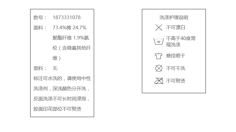 73.4%棉 24.7%聚酯纤维 1.9%氨纶(含微量其他纤维)