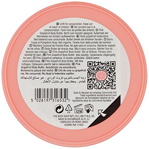 Studio : The Body Shop ReleaseDate : 2015-09-21 Publisher : The Body Shop Binding : Health and Beauty Product Description This rich, intensive mega pink grapefruit body butter keeps your skin super-smooth and soft. Pink grapefruit seed oil provides essential fatty acids to repair skin's moisture barrier, so it feels smooth and supple. 0