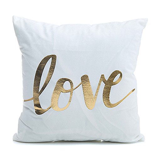 Kingla Home Square Cushion Cover For Couch Gold Printed “LOVE” Throw Pillow Cover 18x18 Inch(45cmx45cm) Decorative Pillow Case For Valentine's Day