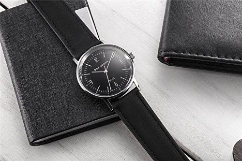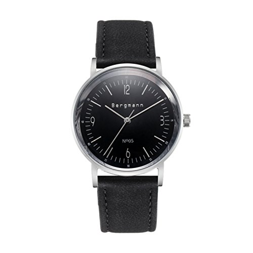 -. Title : Bergmann Bauhaus Style Unisex Casual Watches Quartz Black Dial Leather Watch for Men and Women 005