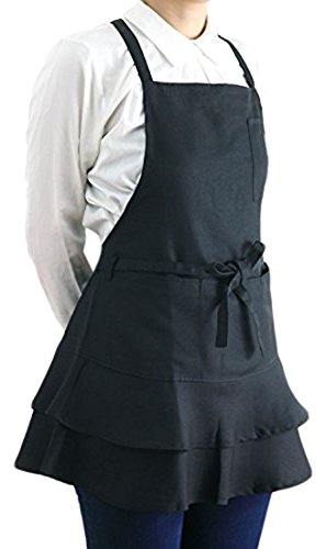 -. Title : エプロン 裾フリル 黒 撥水 ソムリエ 前掛け スモック かわいい ワンピース おしゃれ スモック 保育士 幼稚園 制服 ユニフォーム イベント キッチン