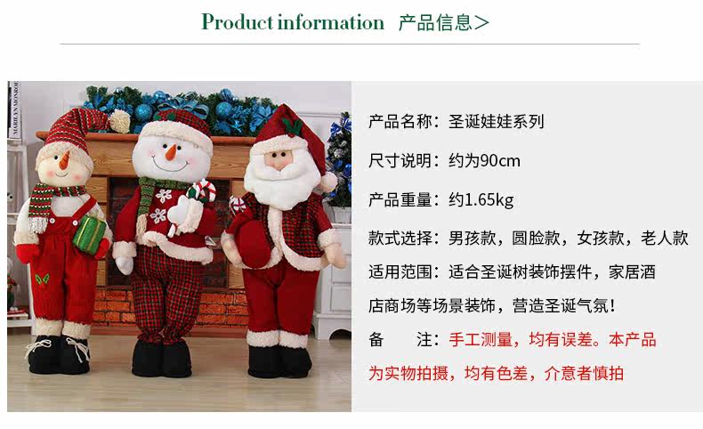 [Name] Hang Hong Kong Christmas decorations 90cm plush Santa Snowman tabletop layout decoration Christmas ornaments