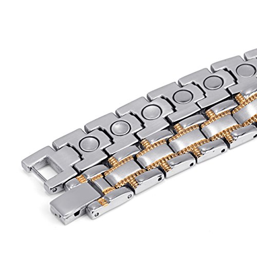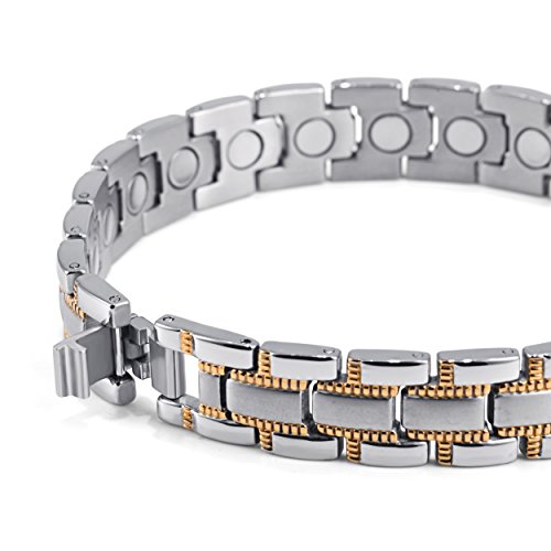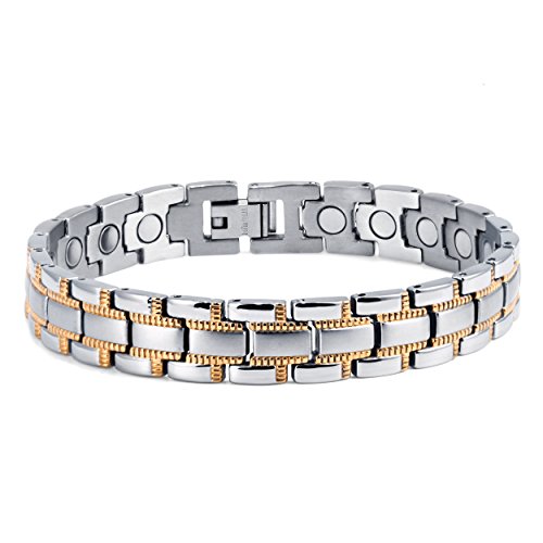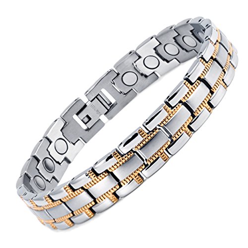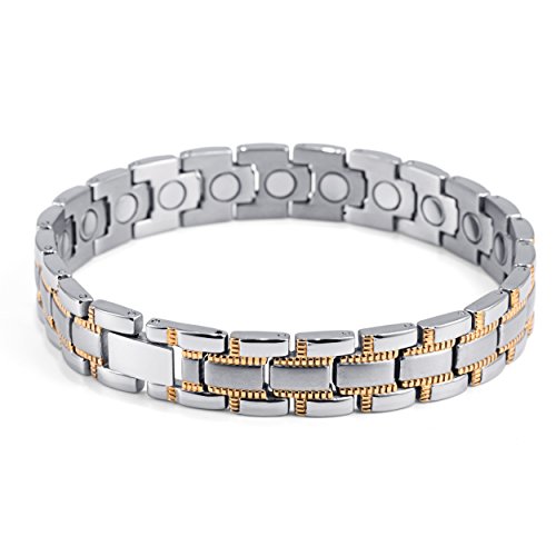 -. Binding : Health and Beauty -. Brand : HZX -. IsAdultProduct : 0 -. Label : YC-HZX -. Manufacturer : YC-HZX -. ProductGroup : Health and Beauty -. ProductTypeName : HEALTH_PERSONAL_CARE -. Publisher : YC-HZX -. Studio : YC-HZX -. Title : Lifestyle Titanium Magnetic Therapy Bracelet Pain Relief for Arthritis and Carpal Tunnel magnets as health care element are embedded in each bracelet.