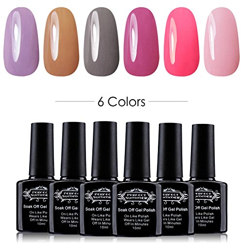 UV Led Gel Nail Polish Set Kit - Nail Lacquers Soak Off for French Manicure Pedicure Including 6 bottles, 10ml each (Set #08)