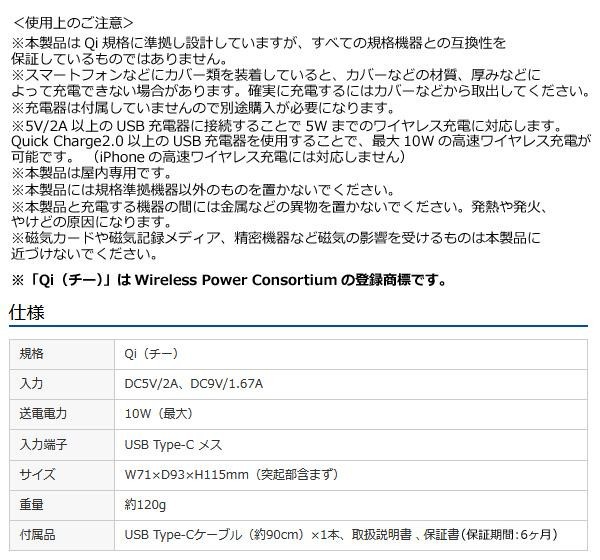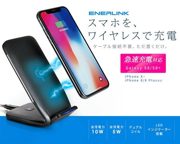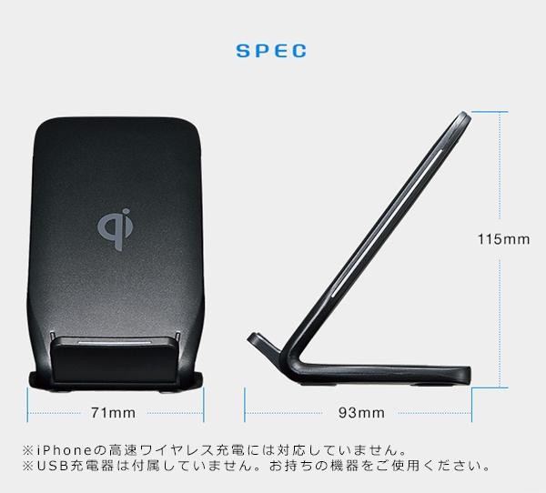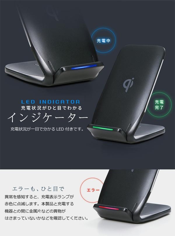 ワイヤレス充電の規格「Qi(チー)」に準拠したワイヤレス充電スタンドです。Qi(チー)規格に準拠したスマートフォンなどを置くだけで充電することができるので、充電ケーブルに接続する必要がありません。充電しながらでもスマートフォンを使用することができるスタンドタイプです。 |