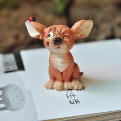 Top Collection Miniature Fairy Garden and Terrarium Chihuahua with Ladybug Statue