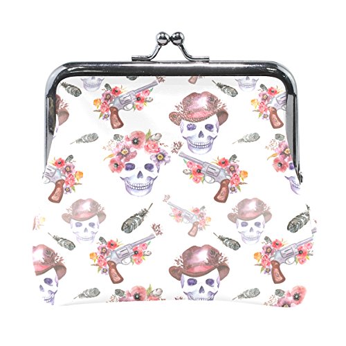 (COWETS)/Accessories/Wallets, Money Key Organizers/DIRECT FROM USA/Ethel Ernest Skull Head With Gun Coin Wallets Mini Purse for Womens Girls
