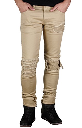 Product DescriptionMen's skinny fit stretch moto jeans with rips and tears and ankle zippers0