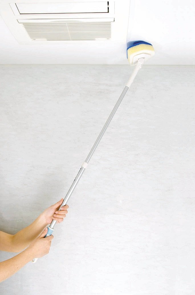 ○ If you extend the handle, you can wash the ceiling and wall of the bathroom.