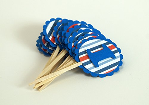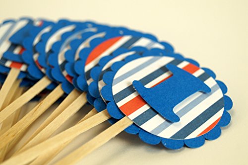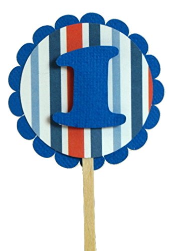 Studio : All About Details Publisher : All About Details Binding : Kitchen Product Description Celebrating 1st birthday is awesome! Decorate your cupcakes with these 1st Birthday Blue-red-white stripes cupcake toppers. Perfect to compliment similar color AAD's Happy Birthday Cupcake Wrappers. These toppers will also suit in train theme birthday party. Made up of 3 layers cardstock. - Blue textured cardstock for the circular scallop frame - Blue-Red-White stripes printed cardstock - Numeric one cut in blue textured cardstock The numeric one is set in double adhesive tape. This setting gives a floating illusion to the number. This cupcake topper has 2in diameter and 2.5in long food safe stick. The food safe stick gives you freedom on how tall you want the topper set in your cupcake. This cupcake topper compliments All About Details Blue/Red Trains Cupcake Wrappers and Blue/Red Happy Birthday Cupcake Wrappers. 0