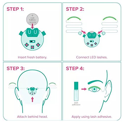 - How to wear :Using lashes sticks on the back of the false eyelashes ,and fix the led false lashes to your eyelid,Put the small controller clip of the false eyelashes attach behind head,Press the black button on the controller for 2-3 seconds to start ,Press again will next flash mode start.
