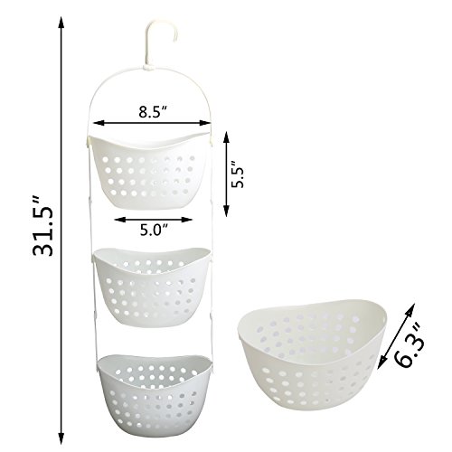 Kleanner Plastic 3 Tier Rack, Hanging Holder Hook Over Grid Storage Basket, Fruit Vegetable, Shower Caddy Holder Rack For Bathroom, Kitchen, Daily Collection, Tidy Organiser (White)