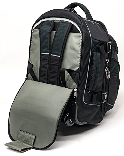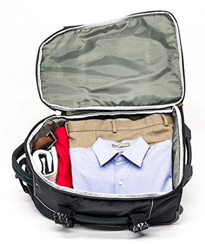 HIDDEN STRAPS & WHEELS Wheeled carry-on pack features hidden backpack straps to get your gear easily over rough terrain