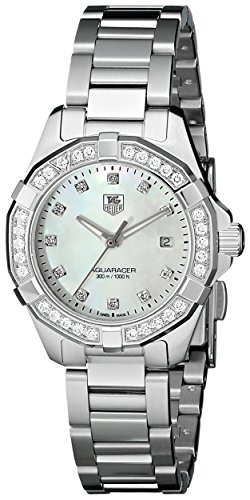 This Aquaracer watch by Tag Heuer is a new addition that is sure to impress many This magnificent timepiece features a silver stainless-steel band that screams for attention and a 29MM stainless steel case that backs it up The mother-of-pearl dial brings the entire look together And with 300 meters 984 feet 30 atm water resistance and a antireflective sapphire crystal you will be getting a fashionable watch that you can be sure will lastFeature