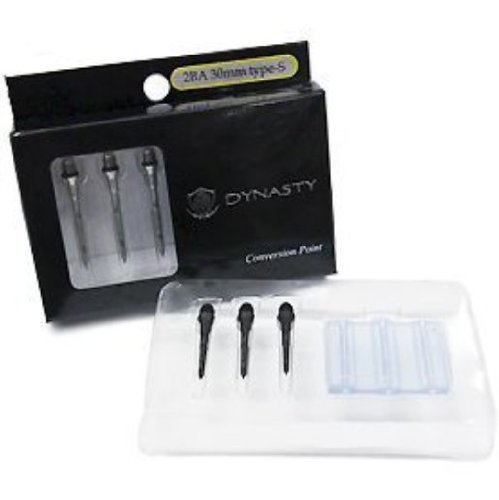 Dynasty Stainless Steel Conversion Points. This product comes equipped with rubber o-rings to ensure your tip does not work itself loose. Total Length: 35.0mm. Length with out threads: 30.0mm. Dynasty Conversion Points are available in short and long lengths and in silver and black. Weight: Approximately 1.7g. Use on steel tip dartboards ONLY, DO NOT use on soft tip dart boards. Very high quality conversion points from Dynasty Japan. Sold in sets of 3. Pairs wonderfully with all No. 5 (thread size) darts and L-Style products. This listing is for the item listed in the title. All pictures other than that of the item in the title is for illustrative purposes and show comparison of like product.