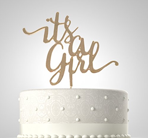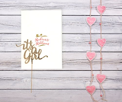 Rubies & Ribbons It's a Girl Gold Metal Baby Shower Cake Topper Party Decoration with Gift Box