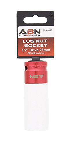 Practical: Use the ABN 1/2” Inch Impact Drive 21mm Lug Nut Socket – Non-Marring, Color-Coded, Laser-Etched, Thin-Walled Wheel Rim Protector to remove bolts on a vehicle’s wheels as the protective sleeve prevents damage on custom rims and lug nuts