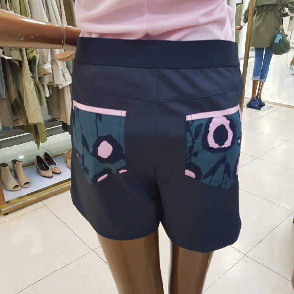 핑크컬러의 프린트가 돋보이는 반바지로 신축성이 좋아서 편한 착용감을 느낄수있습니다.