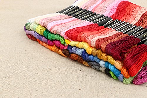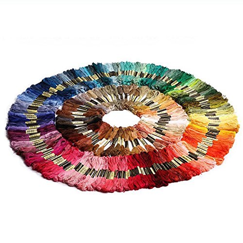 -. Feature : 150 skeins of cross stitch embroidery thread in one set.Each skein is 8 meters in length and composed of 6 strands / 150 Different colors. Item comes up in random color and picked up manually, maybe not totally same as the showing pictures, please note / Material: durable soft polyester cotton. / Great for freestyle and sewing decoration, crafts, corsages, ornaments, cross-stitched embroidery