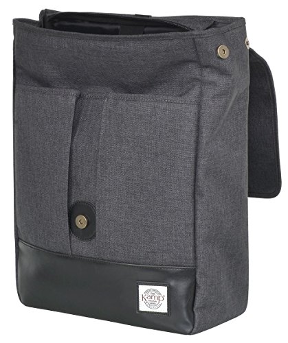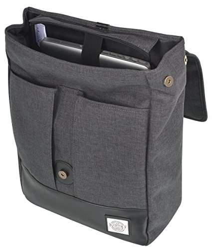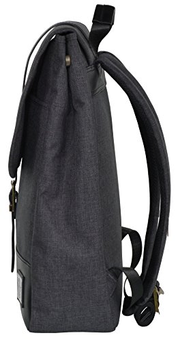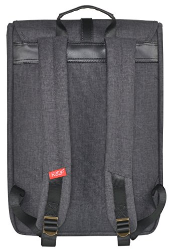 • Top load opening. • Zipper closure on main compartment. • Laptop pocket in main compartment. Fits up to most 17" laptops. • Magnetic latch closure on front flap. • 2 exterior pockets. • Magnetic side snaps on the upper sides for adjustable opening depth on the main compartment. • Padded back for comfort. • Padded adjustable shoulder straps. • Top handle with leather details. • Lined.Feature