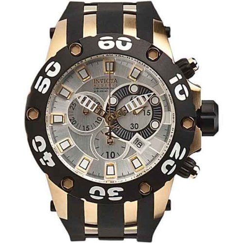 -. Title : Invicta Men's 0915 Subaqua Reserve Chronograph Silver Dial Black Polyurethane Watch