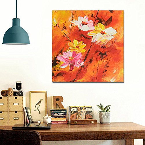 ★ BEAUTIFUL ACCENTS AND COLORS - On a red background ,blossoming flowers bloom on the branches, saturated colors is full of vitality and energy.The beautiful art is framed by solid wood