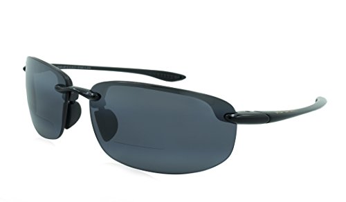 Maui Jim Ho okipa Gloss Black Reader is lightweight, rimless sport wrap with Polarized, Polycarbonate bifocal lenses. This best selling shape offers superb protection from wind and sand and is saltwater safe.