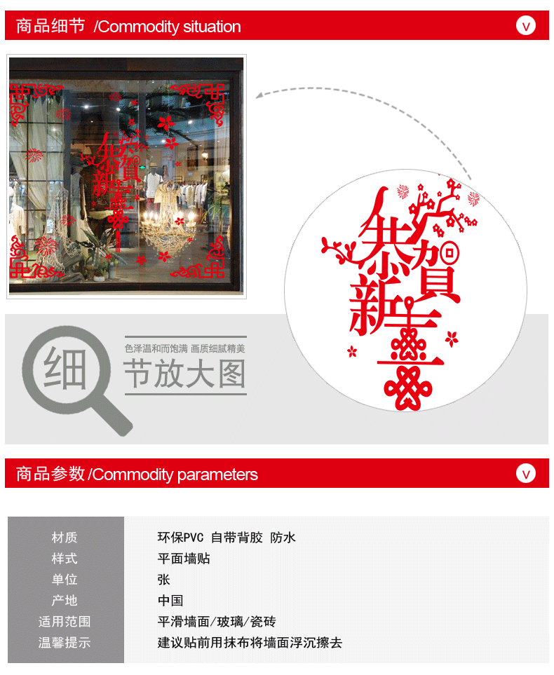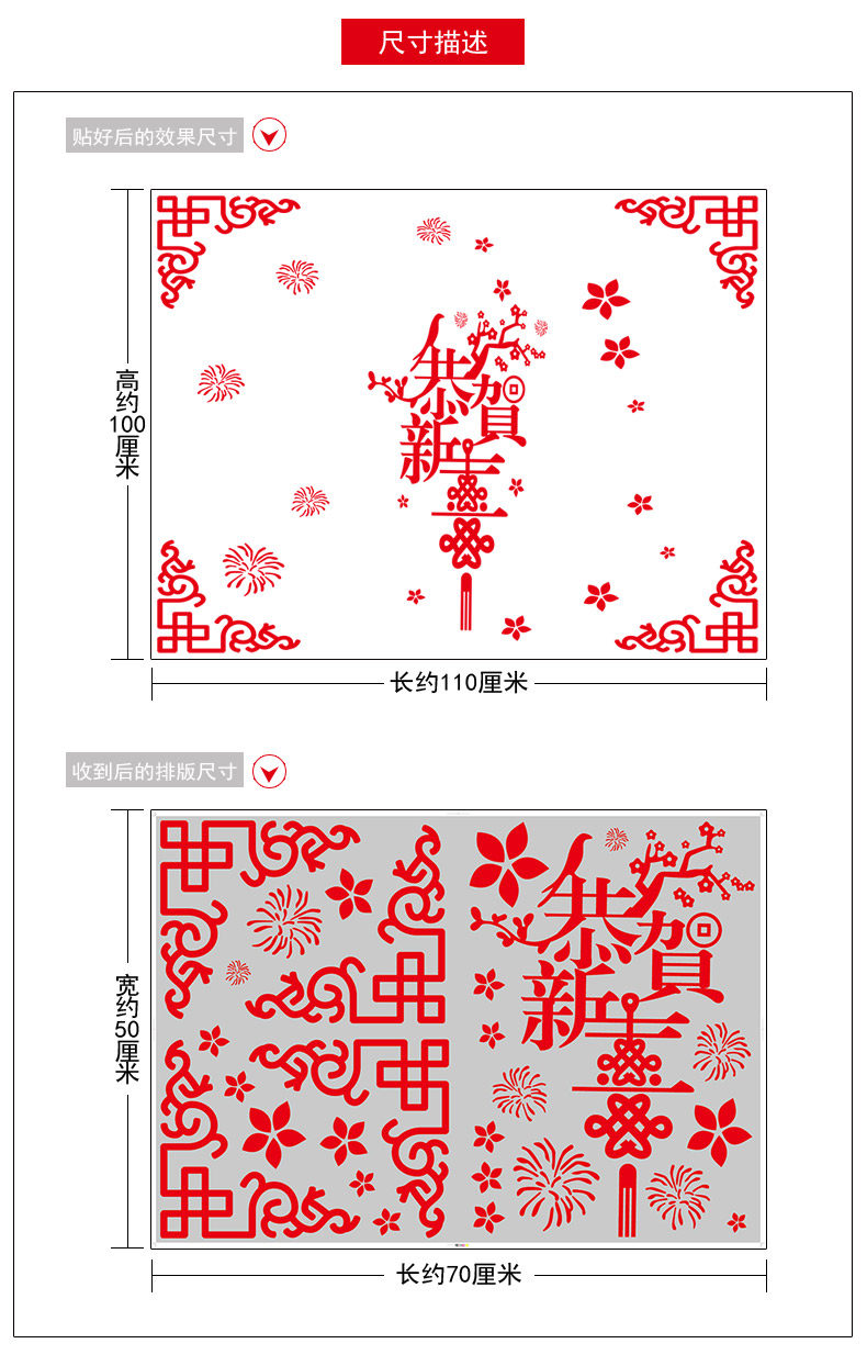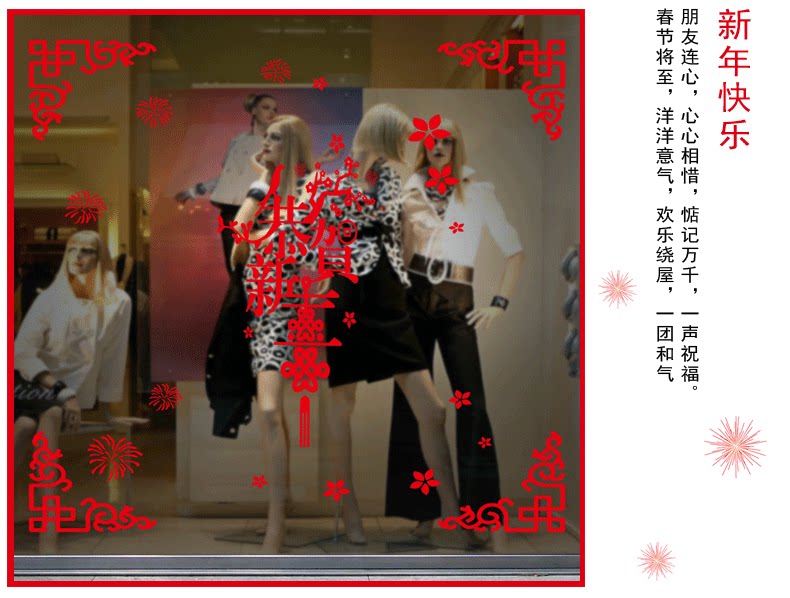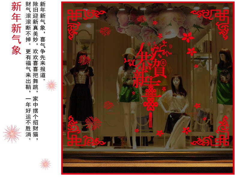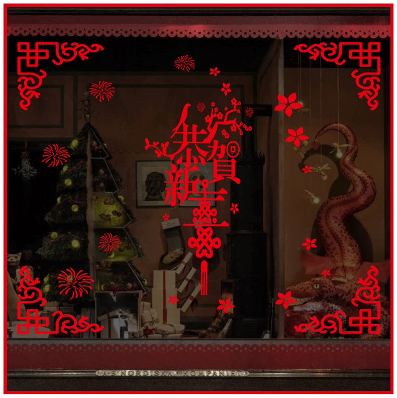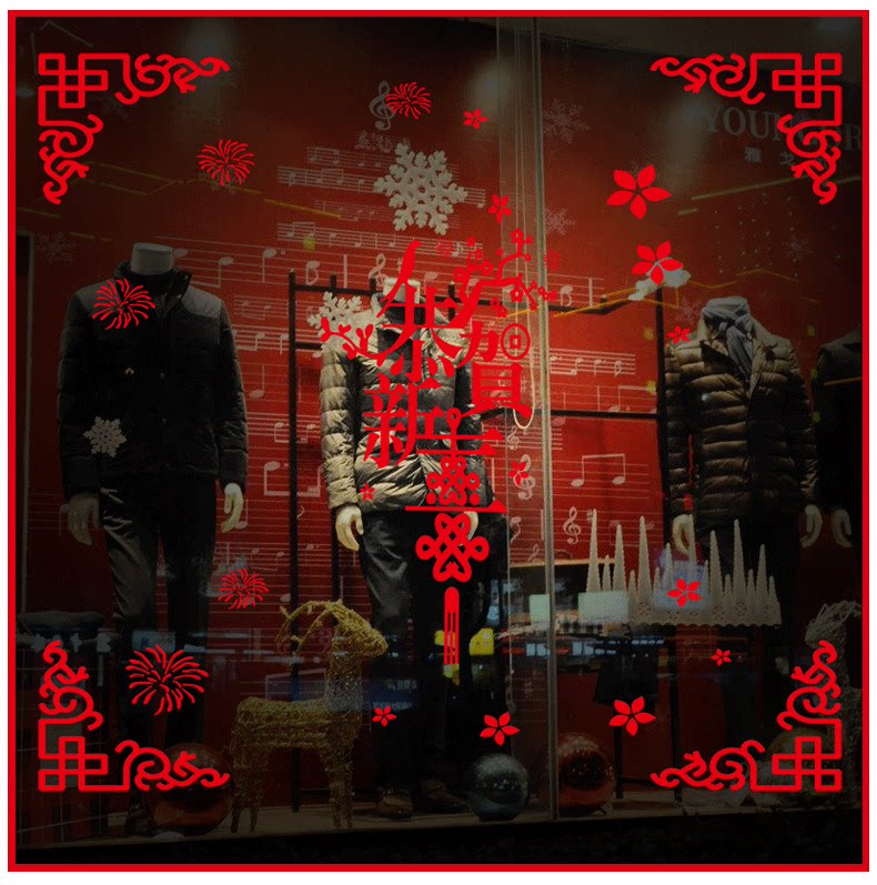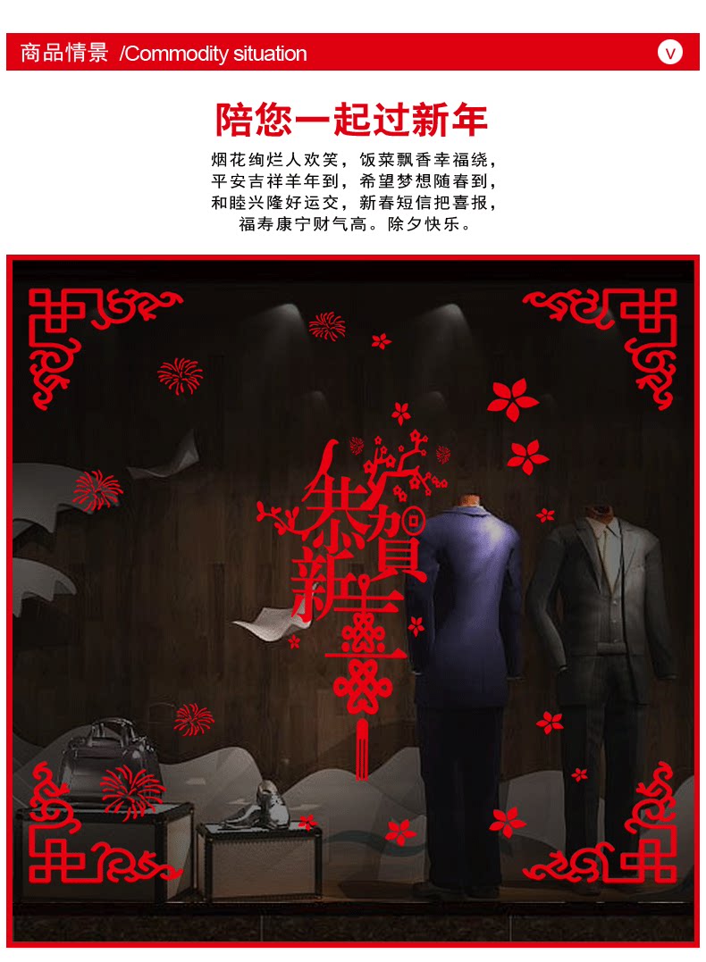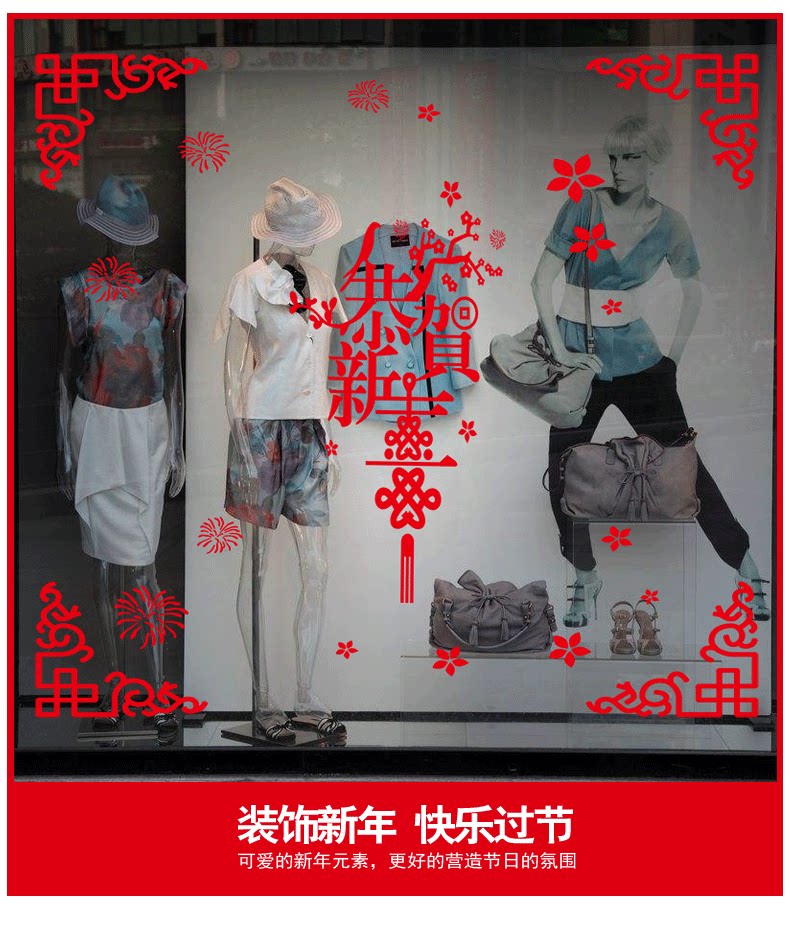 恭贺新喜贴纸场景布置贴画新年快乐春节商场门店铺橱窗户窗花墙贴