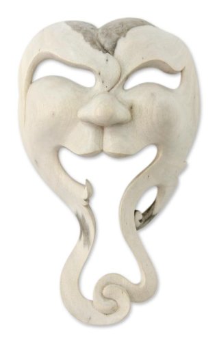 NOVICA Decorative Modern Hibiscus Wood Mask, Beige, 'Surreal Hunter'