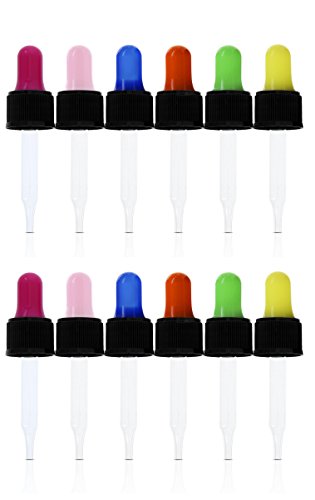 Year of Plenty Glass Eye Droppers for Essential Oils, set of 12, multicolored - Compatible with doTERRA and Young Living 15ml bottles