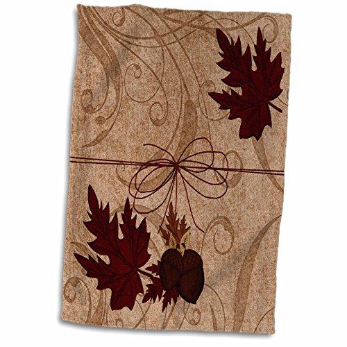 3D Rose Red Maple Leaves with Acorns and a Twine Bow for an Autumn Feel. twl_173232_1 Towel, 15" x 22"