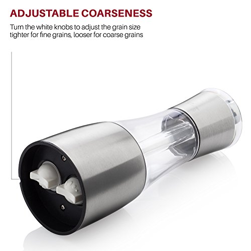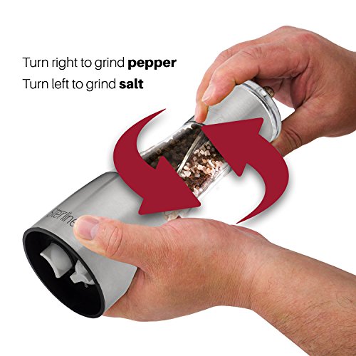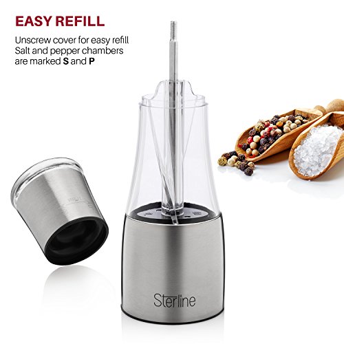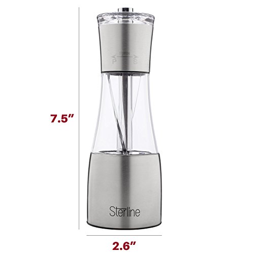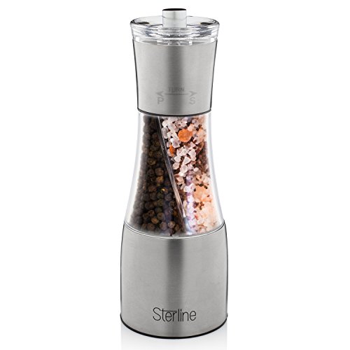 Sterline 2 in 1 Salt and Pepper Grinder, Refillable Adjustable Spice Mill, Manual Dual Combo Black Pepper and Rock Salt Grinder, Modern and Unique Gourmet Design, Stainless Steel