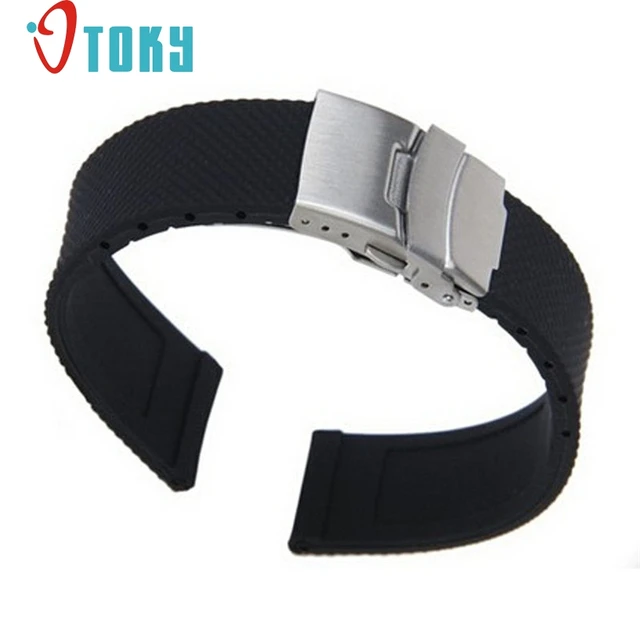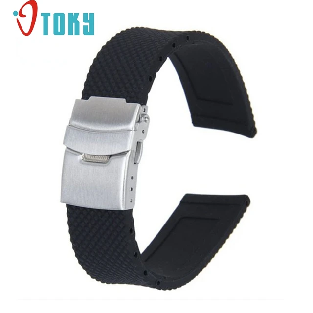 1 개남성 실리콘 고무 시계 스트랩 밴드 방수 배포 걸쇠
